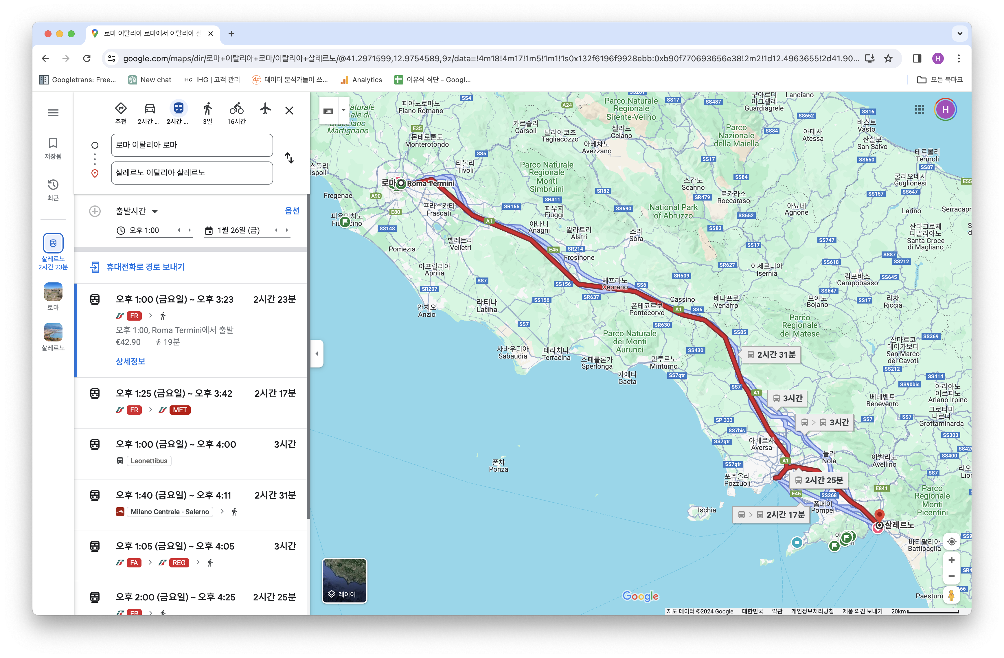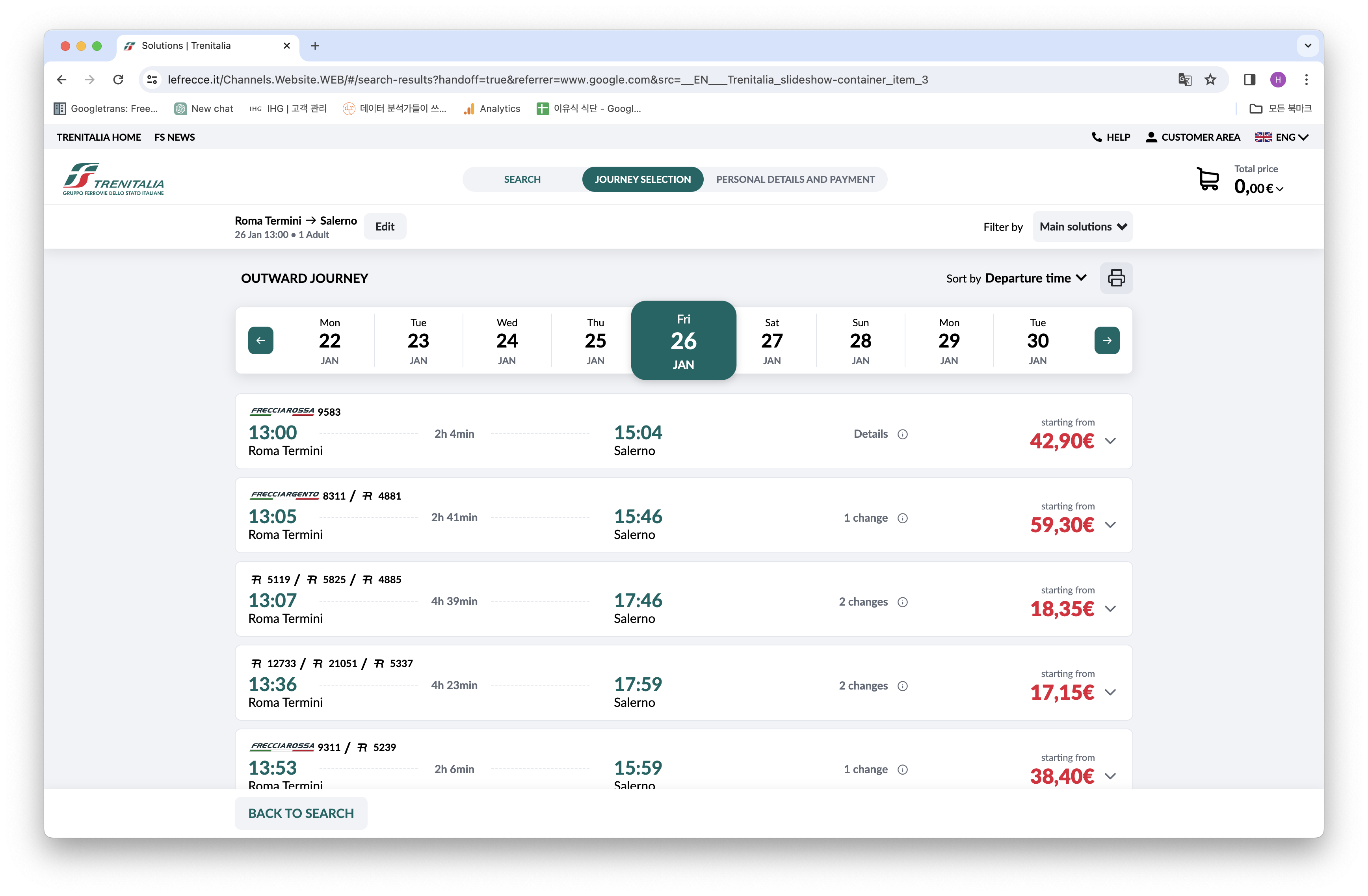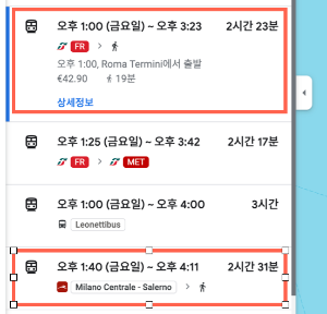두 회사의 소요시간은 비슷하지만 가격면에서 Trenitalia 가 더 비싼걸 알 수 있다.