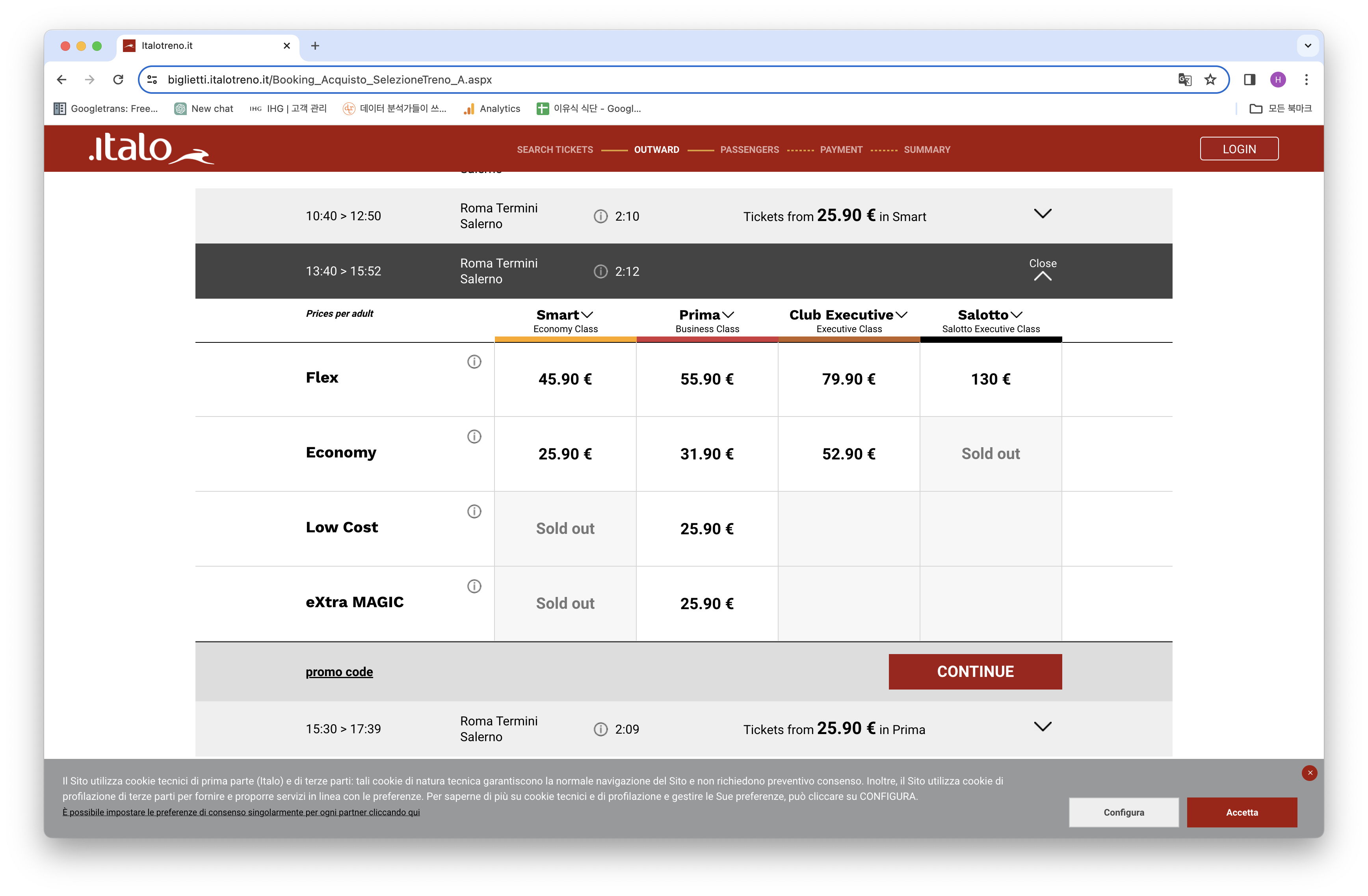 ITALO 는 미리 예매할 경우 PROMO(프로모션) 티켓의 가격이 매우 저렴하기 때문에 좀 더 높은 등급의 좌석을 예매하더라도 합리적인 가격에 예매할 수 있다.